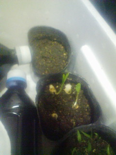 芽の出たひょうたんを植え替えた。ビニールの中に4つ、プランターに15くらい、物置の横の土に直播きが5くらい。どのやり方が良いかの実験。