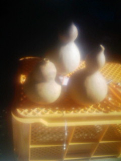 ・ひょうたんの口は大ひょうたんで12㎜のドリルが種も取りやすく良かった。 ・種を取り出すとき、ひょうたんに水を入れると軽い種は口の方にくる。 ・軽い種を取り出した後ひょうたんをひっくり返すと今度は重い種(水に沈む種)が口にくる。そこから栓をしていた指を離すと水と一緒に種が出る。また取りにくい種はピンセットで取り出す方法も良い ・陰干し後の皮取りは水に浸けると表面の皮(表皮)が柔らかく良い ・どうしても取りにくい皮は真鍮製のブラシが良い ・ひょうたんを形作った皮(真皮)は乾きが早いとシワになる。乾き加減を見て調整する。 ひょうたんが乾き、皮(真皮)が形成されると太陽光にさらしても大丈夫である 水に浸けたひょうたん(中身を腐らせる方法)は早い目(通常2週間~1ヵ月間)に出した方が良かった(10~12日間) |